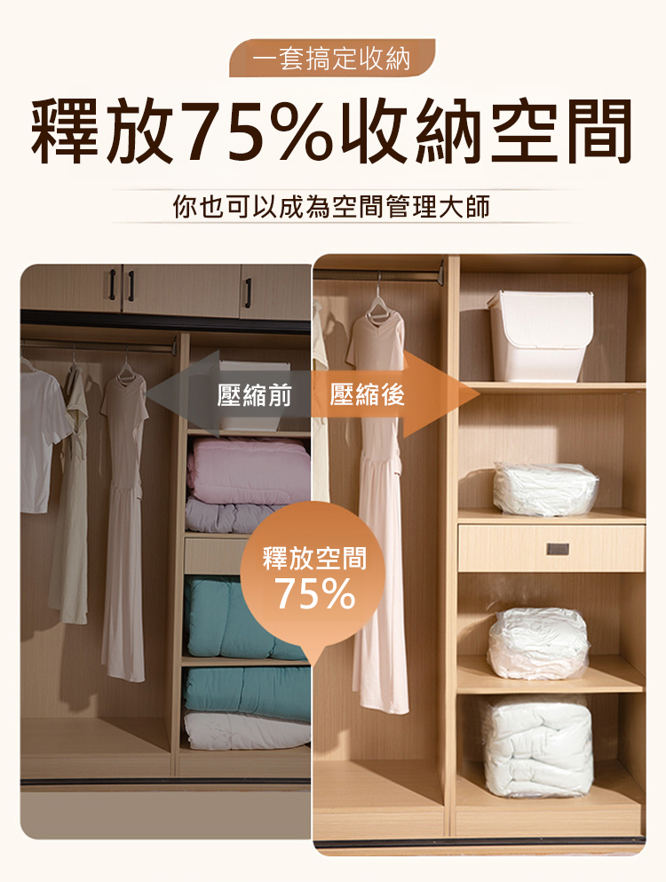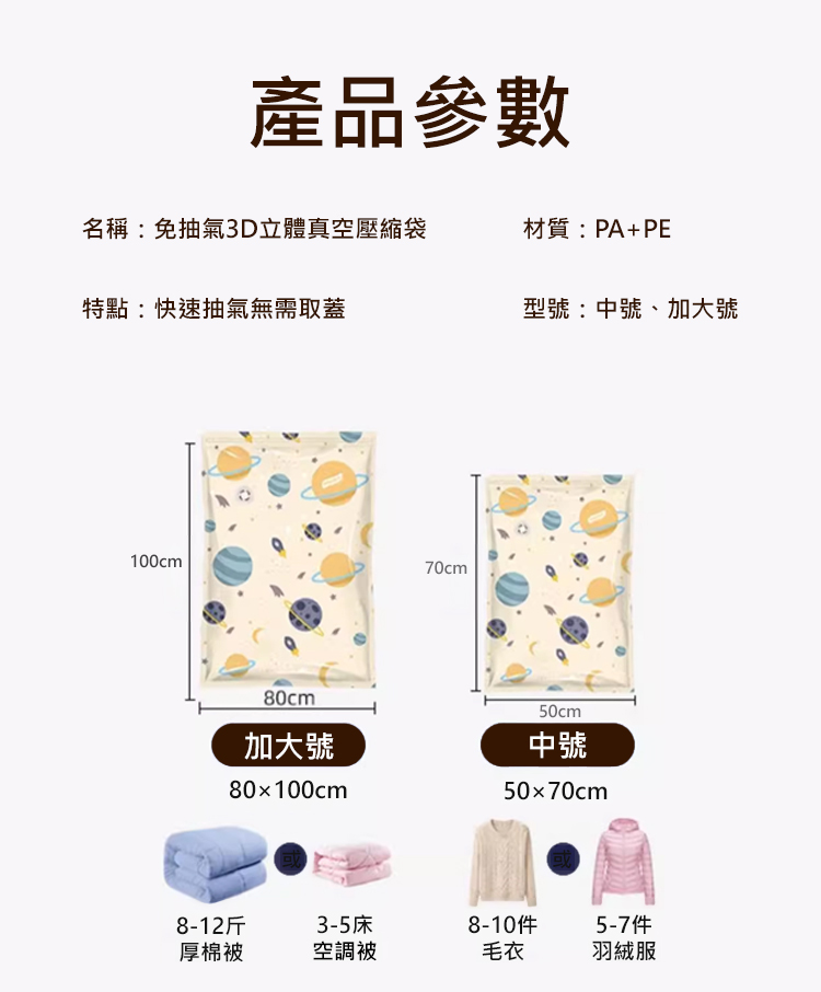 防潮防黴加厚免抽氣3D立體真空壓縮袋